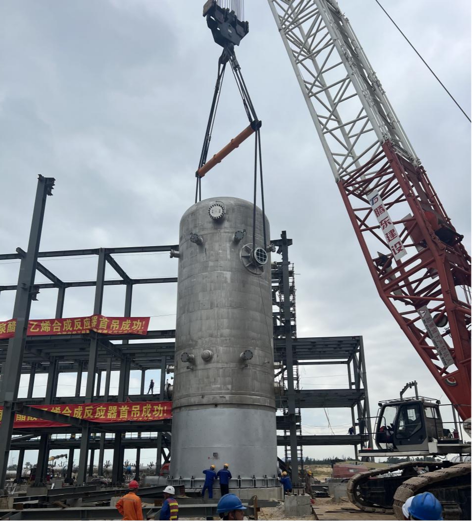 提速攻堅丨海泉化學年產20萬噸醋酸乙烯項目成功完成首件大件設備吊裝